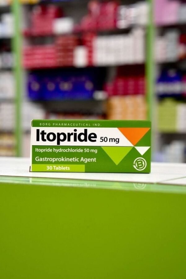 Itopride 50 mg is an oral gastroprokinetic medication containing itopride hydrochloride — a benzamide derivative with a dual mechanism of action: dopamine D2 receptor antagonist and acetylcholinesterase inhibitor. It increases acetylcholine activity, improving gastrointestinal motility, accelerating gastric emptying, and enhancing coordination in the upper GI tract. It also has an antiemetic effect by acting on D2 receptors in the chemoreceptor trigger zone.